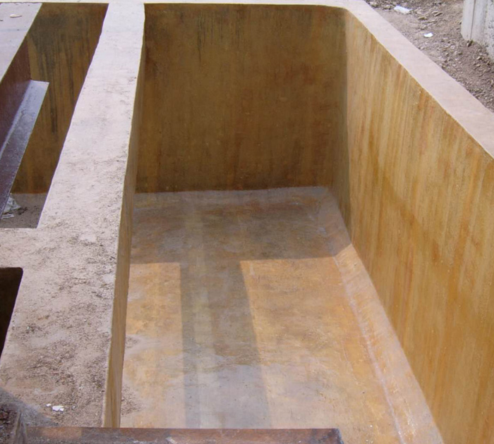用于儲存水、酸堿液體、廢水的混凝土水池如:消防水池、中水池、酸堿池、污水池、廢水池、氧化池、調節池、沉淀池、隔油池、游泳池等由于水及酸堿液體長期浸泡、腐蝕,各大中城市的高層建筑生活水池、消防水池、蓄水池及化工、醫藥、電力、機械、電源、電鍍、電子、鋁材、陶瓷、冶金等行業內廣泛使用。